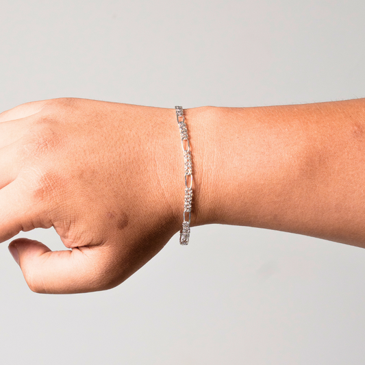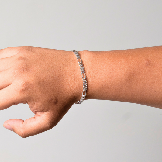 Pulso de plata tejido Figaro solido hecho a mano con broche de caja 6.5 mm