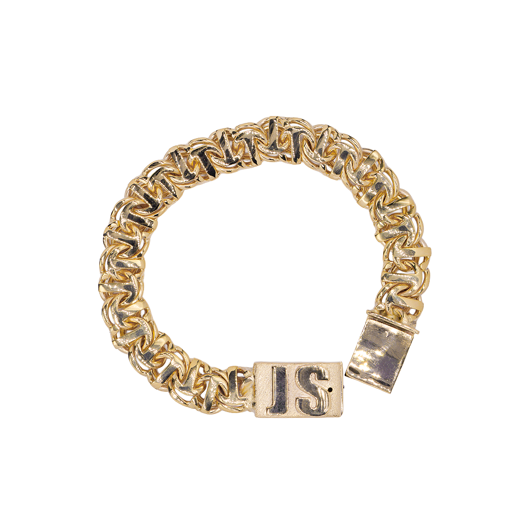 Pulso de oro tejido Guccino con iniciales solido hecho a mano con broche de caja 15 mm
